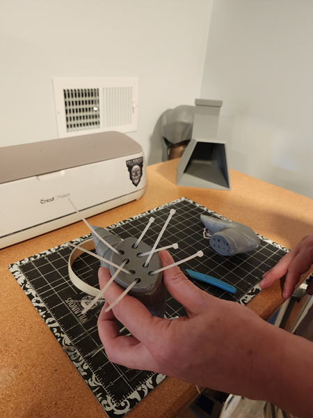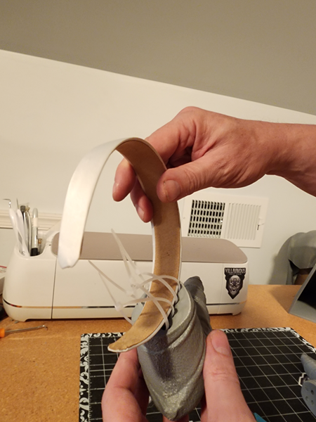 - Slide the headband through the loops to match the measured distance using the ruler. Tighten the zip ties.