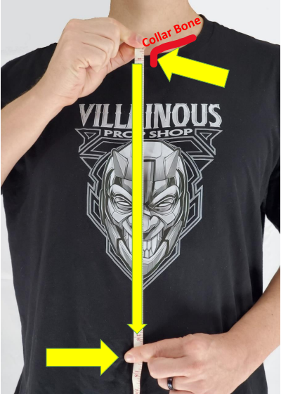 - Scaling for the length of your armor. Start between the collarbones at the center of your body and measure straight vertically down to your belly button; without accounting for the body’s curvatures. The armor lays flat, and not around.